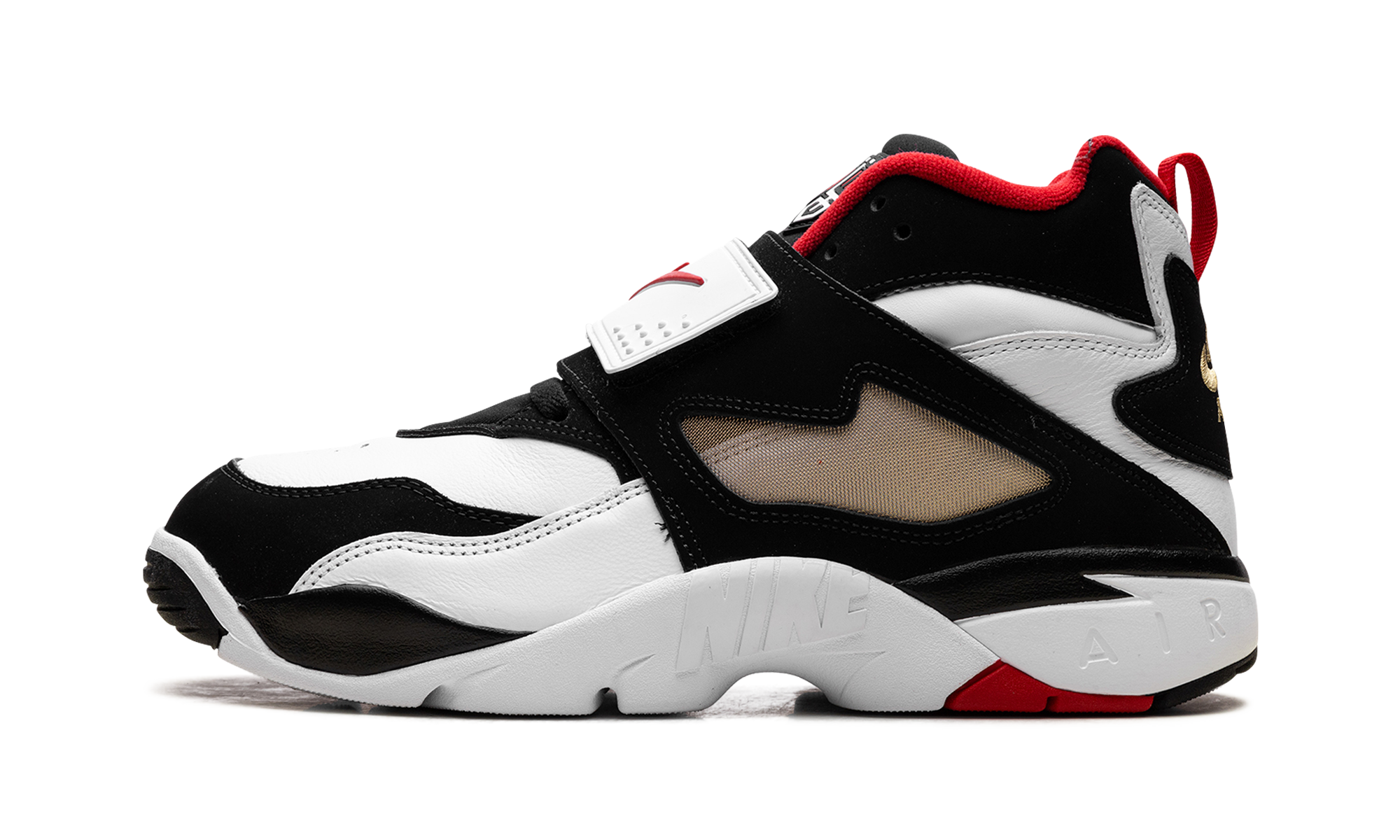 The Nithtke Air Diamond Turf 49ers (2025) revives Deion Sanders' iconic '93 sneaker, honoring his 49ers tenure. Crisp white leather meets black nubuck, punctuated by vibrant fire red accents on the Swoosh, liner, and outsole. The signature midfoot strap ensures a secure fit and bold style. Built for dual-sport athletes, it offers versatility and comfort. A cushioned midsole provides support, while the durable rubber outsole delivers traction. Tongue and heel branding add flair. This retro release blends nostalgia with fresh design, celebrating Sanders' legendary career and the 49ers' championship legacy. 49ers