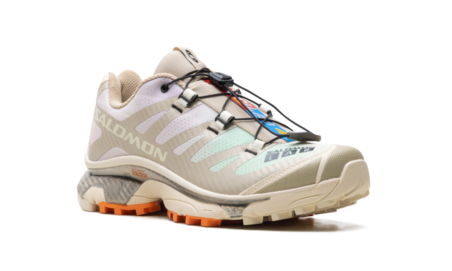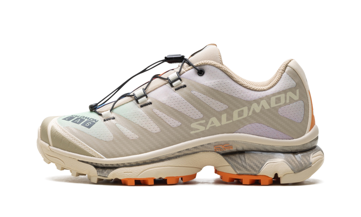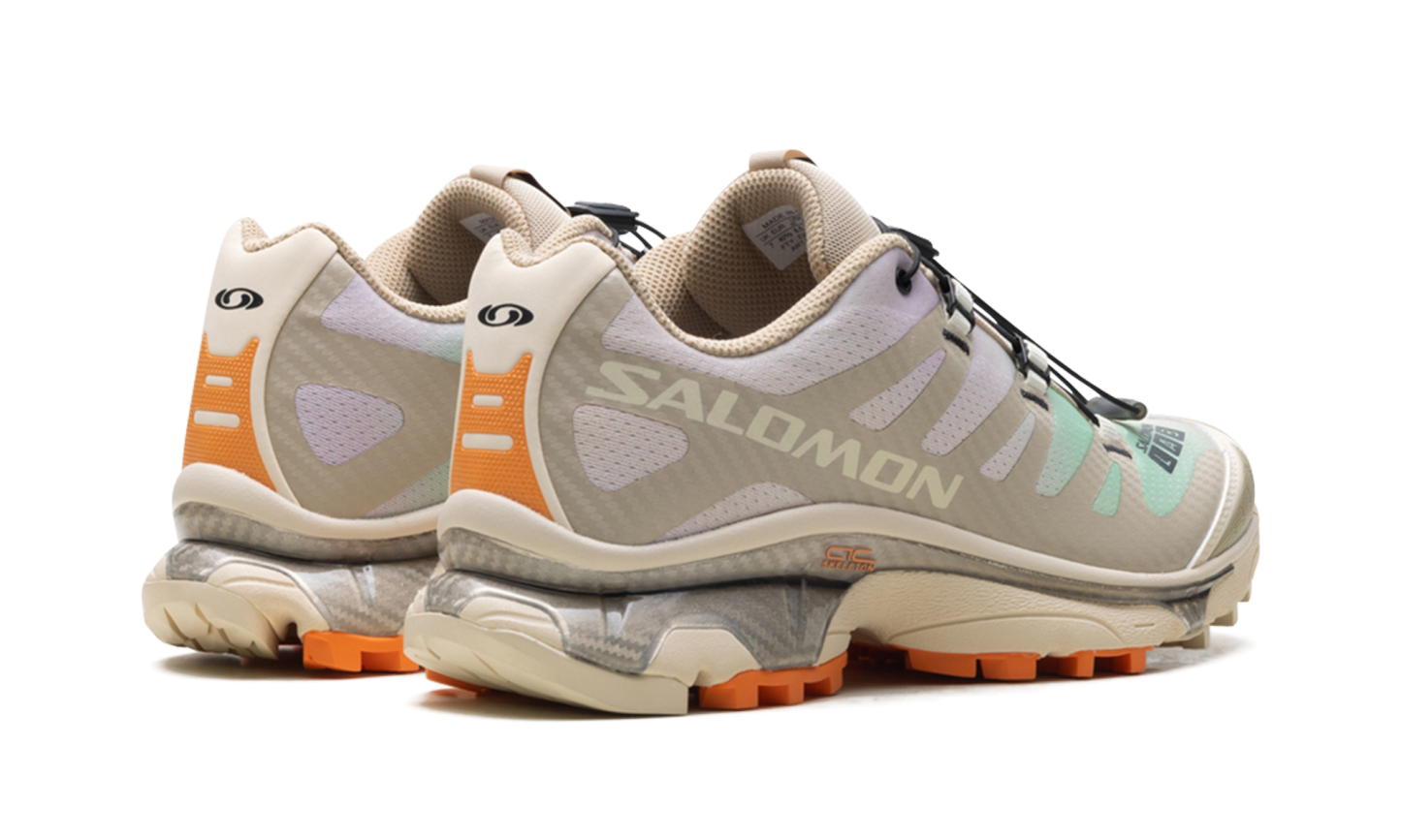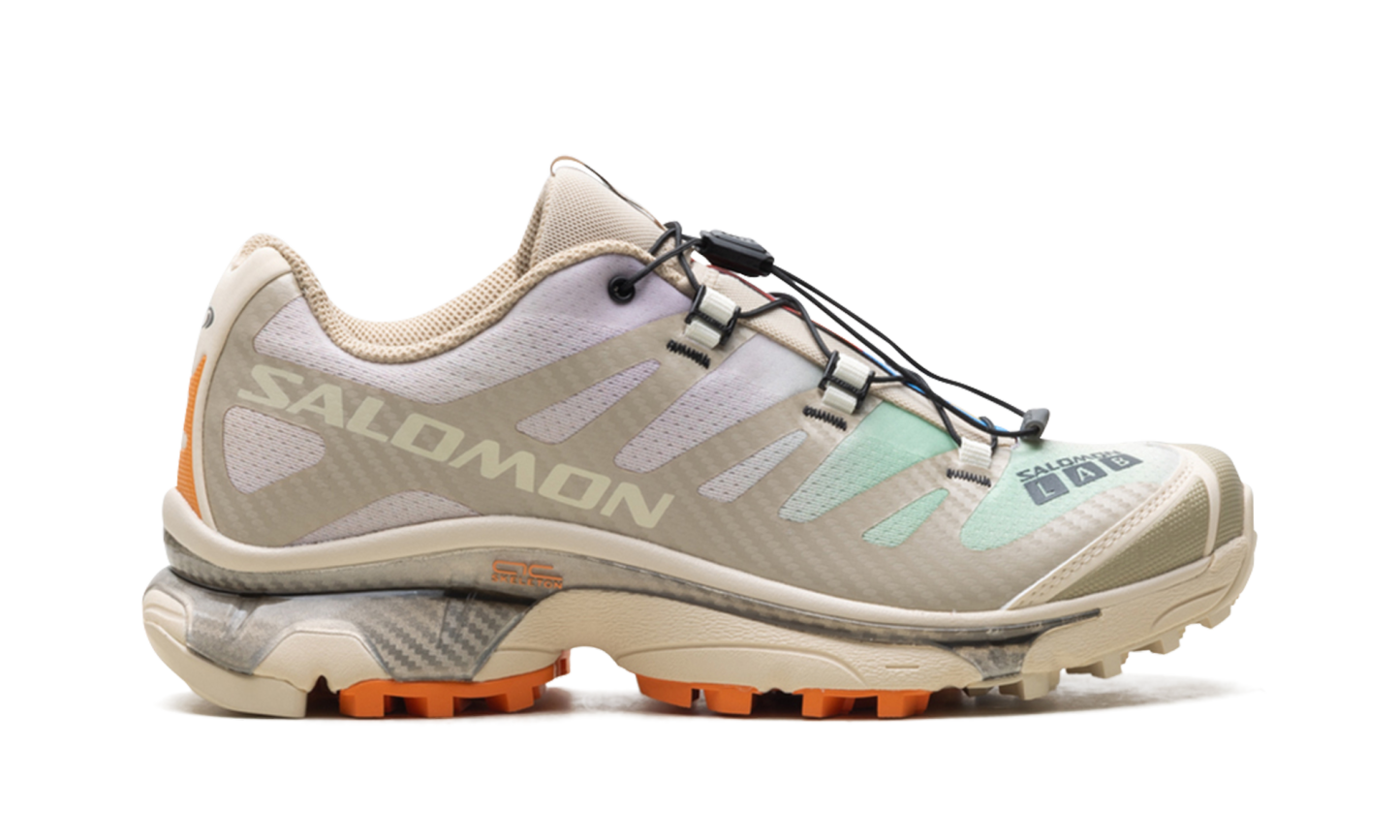 Illuminate your rotation with the ethereal, landscape-inspired aesthetic of the XT-4 OG "Aurora Borealis Shortbread," a silhouette that masterfully pairs a warm, neutral foundation with celestial-inspired gradients. This iteration features a breathable "Shortbread" tan mesh upper distinguished by a soft, multi-colored gradient along the side panels that evokes the shifting light of the northern sky. Reinforced by tonal TPU overlays and grounded by high-visibility "Sun Baked" orange lugs on the outsole, it offers a perfect balance of organic tones and technical flair. Engineered with a full-length Agile Chassis™ System (ACS) for superior stability and a responsive dual-density midsole for premium energy return, it is finished with the iconic Quicklace™ system for a secure, precision fit. These sneakers deliver a sophisticated, tech-forward anchor that transitions effortlessly from dawn-lit trails to the city streets.