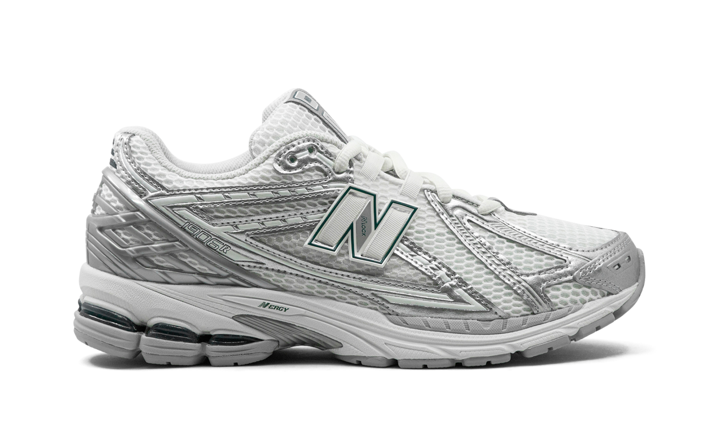 The New Balance 1906R “Silver Metallic” is an ultra versatile colorway of the retro performance running shoe. Debuted in 2010, the New Balance 1906R was reissued in the 2020s as a lifestyle shoe with a few modifications to its design from the original version, all with comfort in mind. On the “Silver Metallic,” the shoe has a white open mesh construction with Silver Metallic synthetic leather overlays. A Silver Metallic plastic heel counter can be found on the back of the shoe, while a white and silver textured “N” appears on either side. An N-ERGY cushioned midsole provides all-day comfort.