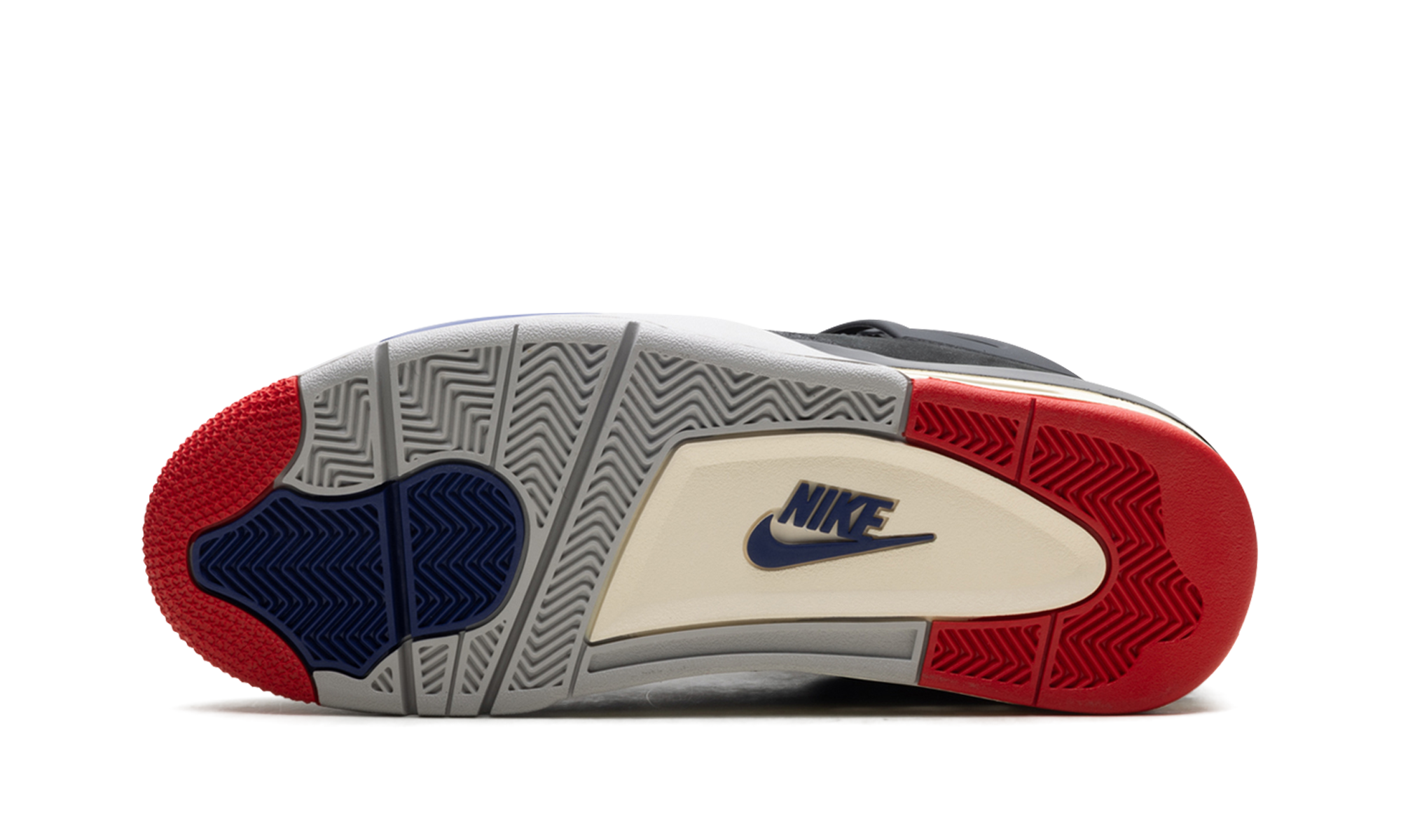 The Air Jordan 4 "Rare Air 2025" is a distinctive colorway of Michael Jordan's fourth signature shoe. This Jordan 4 has a primarily black upper that is accented with pops of blue and red. The 2025 "Rare Air" AJ4 incorporates the signature design details of the Air Jordan 4, including the mesh panels and wings on the side. Nike Air branding appears on the heel. The Air Jordan 4 "Rare Air" also stands out because of the removable patches on the tongue. Rare Air- White Lettering